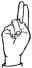На ћирилици написано АЛЕКСАНДРА ШЋЕЛОВИЋ састоји се из 18 слова [?]. Исписано ћириличном једноручном азбуком за глувонеме: